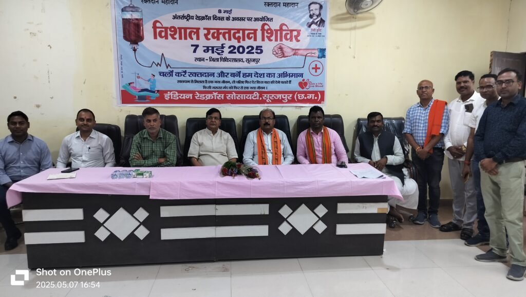 सुरजपुर/ विश्व रक्तदान दिवस के मौके पर रेड क्रॉस सोसाइटी द्वारा जिला अस्पताल में रक्तदान शिविर का आयोजन किया। इस शिविर में बड़ी संख्या में रक्तदाताओं ने रक्तदान किया। शिविर में लगभग 80 लोगों ने रक्तदान किया।