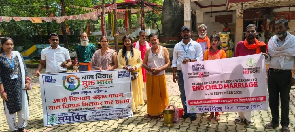 सूरजपुर, 14 सितंबर 2025।समर्पित संस्था और जस्ट राइट फॉर चिल्ड्रन के सहयोग से चलाए जा रहे ‘बाल विवाह मुक्त भारत अभियान’ में सरगुजा जिले के सभी धर्मों के धर्म गुरुओं ने एकजुट होकर बाल विवाह जैसी कुप्रथा को जड़ से खत्म करने का संकल्प लिया। 12 से 14 सितंबर तक चले इस अभियान में धर्म गुरुओं ने समाज को जागरूक करते हुए साफ संदेश दिया कि बाल विवाह न केवल सामाजिक बुराई है, बल्कि कानूनी अपराध भी है।