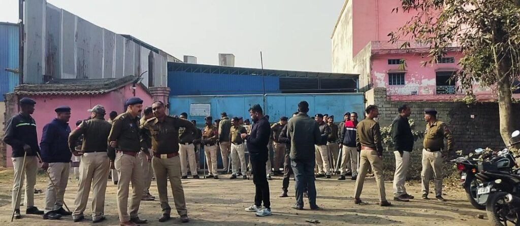 खबर फैलते ही मजदूर और ग्रामवासी आक्रोशित होकर नारेबाजी करने लगे माहौल बिगड़ने की आशंका से मौके पर भारी पुलिस बल तैनात कर दी गई है।