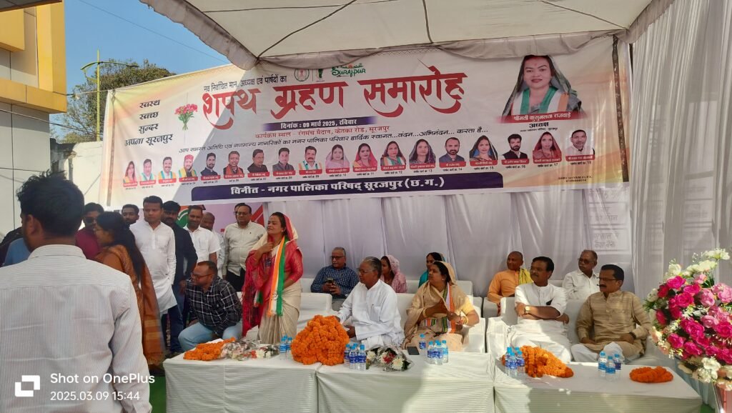 सुरजपुर नगर पालिका में सियासी विवाद के बीच भाजपा कांग्रेस का अलग अलग शपथ ग्रहण संपन्न