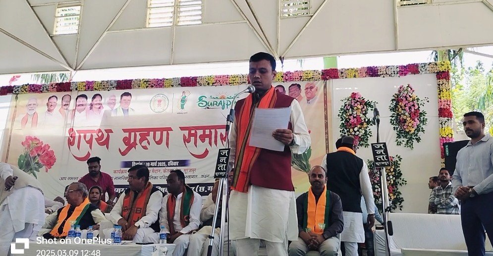 सुरजपुर/ नगर पालिका अध्यक्ष और पार्षदों के शपथ ग्रहण पर राजनीतिक बवाल के बीच अलग-अलग स्थानों पर शपथ ग्रहण समारोह आयोजित किया गया।